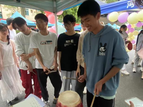 4月11日下午,学院易班在集团“金盆捞月”广场旁举办了“壮乡三月三 歌飘满银海”活动,面向全校师生开展了唱山歌、红歌及现场学习打鼓等活动。