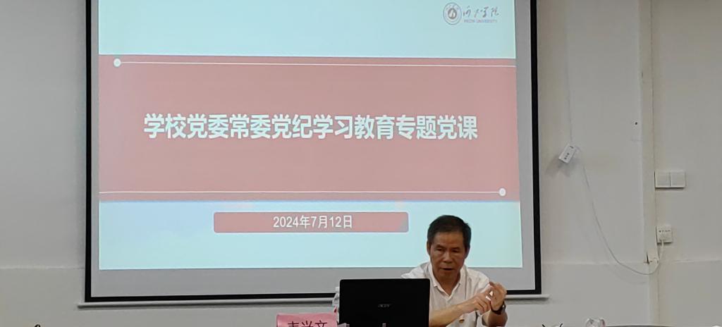 7月12日下午,公司党委常委、总会计师韦兴文应邀到太阳成集团tyc33455cc讲授党纪学习教育专题党课,为公司教师党员讲授了一堂生动而深刻的党课。本次党课由公司党委书记周佐霖主持。